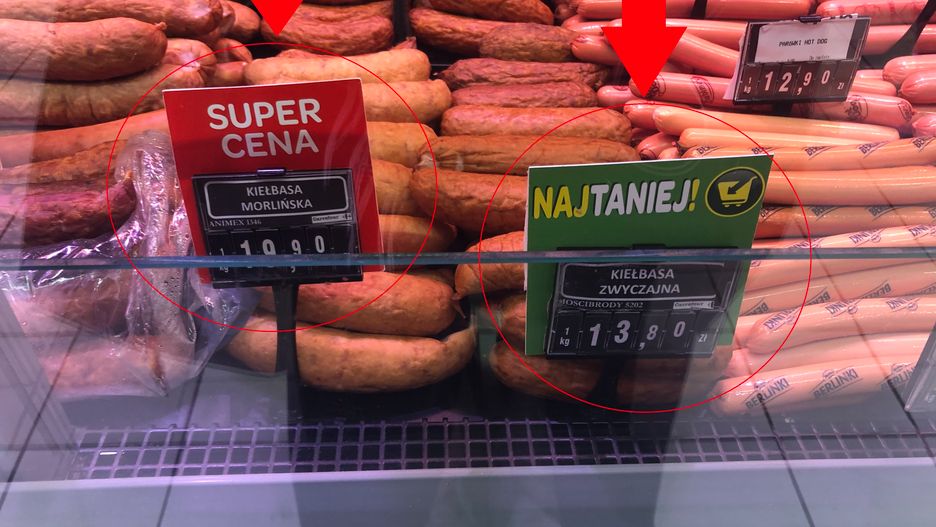 Wchodzę do sklepu i zatrzymuję się przy dziale mięsnym. Wtykam nos w szybę i przyglądam się wyeksponowanym tam kiełbasom. Najpierw moją uwagę zwracają te, które są w promocji, bo napisy "najtaniej" i "super cena" przyciągają wzrok jak magnes. 13,80 zł za 1 kg kiełbasy. Cena jest tak niska, że przechodzi mnie dreszcz na myśl o tym, co może się w niej znajdować. A może przesadzam? Pytam ekspedientkę o skład tego produktu. - Niech pani sobie poszuka tutaj w tej wydrukowanej "książce", która leży na ladzie, albo sprawdzi tam, gdzie są paczkowane produkty, bo to jest to samo, tylko u nas wypakowane - rzuca chłodno pracownica działu mięsnego.