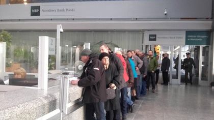 Większość osób stojących od 8 rano w kolejce, to kolekcjonerzy lub współcześni cinkciarze. 500-złotówkę z serią AA szybko wrzucą na Allegro w cenie 600, może nawet 700 zł. Już dziś na tym serwisie można dostać w "promocji" komplet zmodernizowanych banknotów NBP z 2014 roku, wszystkie z serią AA. Cena to 490 zł plus koszty dostawy za pieniądze o wartości 380 zł (10 zł, 20 zł, 50 zł, 100 zł oraz 200 zł, które w nowej szacie jest od 2016 roku).