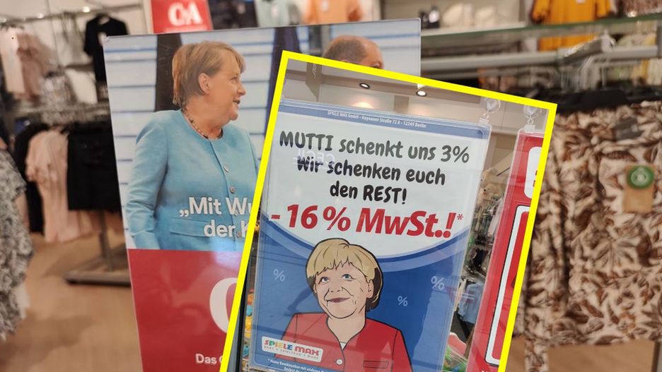 "Mutti [pieszczotliwie mama - red.] dała nam obniżkę o 3 proc., my dajemy resztę" - takie hasła z wizerunkiem niemieckiej kanclerz pojawiły się na witrynach sklepów. Popularne marki oferują przeważnie od kilku do kilkunastu dodatkowych procent obniżki.