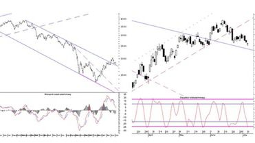 WIG20 kontynuuje spadki. Choć świeca jaka pojawiła się wczoraj na wykresie nie znamionuje dużej siły trendu, to jednak na razie nie pojawiły się sygnały zakończenia spadków i obowiązuje scenariusz zakładający zejście indeksu przynajmniej do 1770 punktów.