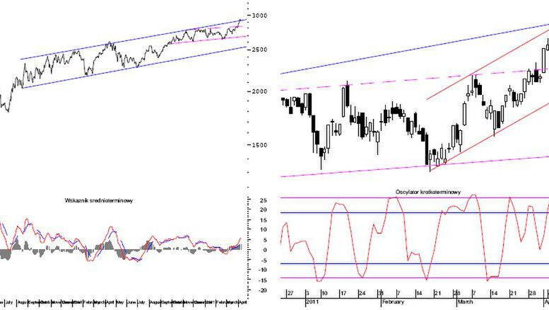 Potencjalny zasięg spadków można wstępnie określić na okolicę 2830 punktów, gdzie przebiega niedawno przełamane, górne ograniczenie średnioterminowego kanału horyzontalnego. Po wykonaniu ruchu powrotnego, możliwe są dalsze wzrosty w średnim horyzoncie inwestycyjnym.[ Zobacz pełną analizę