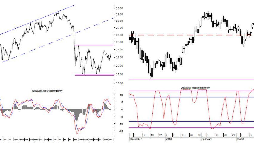 Najbliższe opory pojawią się już na poziomach 2355, 2365 i 2375 punktów, ale indeks prawdopodobnie sięgnie ostatniego lokalnego maksimum na poziomie 2402 punktów, a w przypadku jego przełamania 2430- 2450 punktów i wyżej.
