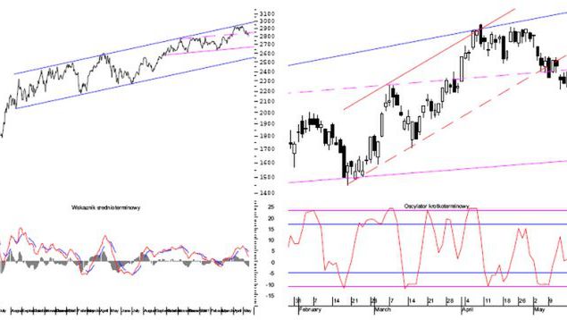 Pomimo długiej białej świecy z poniedziałku, wczoraj WIG20 kontynuował spadki, zniżkując w okolice zasięgu ruchu określonego na 2800 punktów. Jego przełamanie otworzy drogę do 2770-2775 punktów.