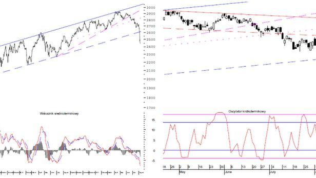 W przypadku kontynuacji korekcyjnego wzrostu najbliższe opory pojawiłyby się na poziomie 2515,2590 i maksymalnie 2655-2675 punktów. Niezależnie jednak od rozwoju sytuacji w ciągu najbliższych sesji, w średnim i długim terminie cały czas obowiązuje scenariusz spadkowy o potencjalnym zasięgu 2300-2330 punktów.