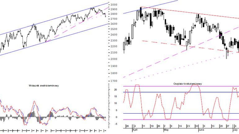 W przypadku przełamania oporu w okolicach 2770 punktów, nie można jednak wykluczyć kontynuacji ruchu nawet do 2800 punktów. Z kolei, pokonanie ostatniego lokalnego minimum w okolicy 2700 punktów, otworzyłoby drogę dla dalszych spadków przynajmniej do 2660 punktów, a prawdopodobnie i niżej.