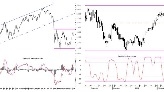 W piątek WIG20 silnie zniżkował, wybijając się dołem z krótkoterminowej konsolidacji. Tym samym można zakładać rozpoczęcie korekty. W jej ramach indeks może zniżkować w okolice niedawno przełamanego szczytu z przełomu listopada i grudnia na poziomie 2288 punktów. Zejście poniżej tego poziomu sugerowałoby głębsze spadki lub wręcz trwałe odwrócenie tendencji.