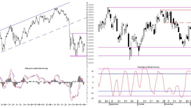 Wczorajsza sesja przyniosła spadek WIG20. Dopóki jednak indeks znajduje się powyżej wsparcia na poziomie 2222 punktów, ruch należy rozpatrywać w kategoriach krótkoterminowej korekty a nie powrotu trendu spadkowego. Tym samym, na najbliższych sesjach wciąż można oczekiwać jeszcze jednego impulsu wzrostowego o zasięgu 2350 punktów. W średnim terminie jednak, powrót długoterminowych spadków wydaje się coraz bliższy.