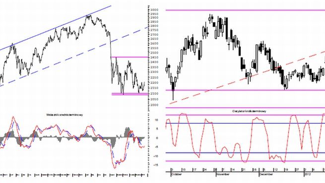 Świeca dzienna posiada wydłużony górny cień, który świadczy o rosnącej aktywności sprzedających. Głębsza korekta może więc pojawić się w każdej chwili. Sygnałem do jej rozpoczęcia będzie spadek poniżej 1,265 pkt.
