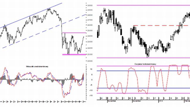 Wczoraj na wykresie WIG20 pojawiła się czarna świeca. Choć na razie trudno mówić o sygnale sprzedaży, to jednak zakończenie wzrostów wydaje się wysoce prawdopodobne. Jako sygnał sprzedaży można uznać przełamanie wczorajszego minimum na poziomie 2358 punktów.