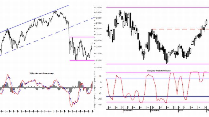 WIG20 przełamał wczoraj maksimum przedwczorajszej sesji, generując sygnał kontynuacji wzrostów. Najbliższy poziom docelowy należy określić na 2390-2400 punktów, a kolejny na okolicę 2430 punktów.
