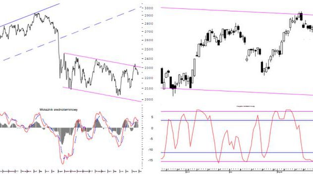 Piątkowa sesja przyniosła silny wzrost WIG20. Na wykresie pojawiła się długa biała świeca, sugerująca korekcyjne odbicie lub wręcz powrót trendu wzrostowego. Najbliższe opory pojawiły się na poziomie 2267 punktów, a kolejne w okolicach 2295 i 2313 punktów. W przypadku trwałego powrotu wzrostów, minimalny zasię ruchu należałoby jednak szacować na 2335 punktów, a potencjalny na 2405 punktów.