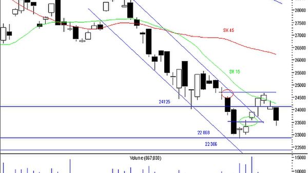 Czwartkową sesję można zaliczyć na konto niedźwiedzi. WIG przy obrocie sięgającym zaledwie 867 mln zł kolejny dzień zakończył na minusie. Na wykresie dziennym indeks wykreślił czarną świecę z dolnym cieniem obrazującą pesymizm panujący w trakcie sesji. Tak bliski poziom oporu 24 125 pkt nie został nawet przetestowany, mimo że wydawał się łatwą do przejścia barierą. Notowania otworzyły się niżej i od pierwszych minut zanurkowały w dół. Podaż była silna w ciągu całego dnia i ostatecznie wyznaczyła minimum na poziomie 23 348 pkt, czyli w okolicach luki hossy z 06.02. W najbliższym terminie powinno dojść do próby zamknięcia tej luki i tam dopiero można oczekiwać jakiejś obrony ze strony kupujących. Jeśli jednak tak się nie stanie kurs WIG będzie miał otwartą drogę do powrotu w okolice dołka bessy. Przesłanką do tego typu wniosków może być również sygnał sprzedaży, jaki wygenerował po wczorajszej sesji oscylator stochastyczny, przecinając od góry swoją linię sygnalną. Pozostałe wskaźniki utrzymują poprzednie
