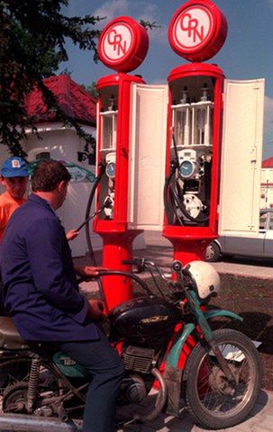 Na zdjęciu scena z 1989 roku i zamknięta z powodu braku paliwa stacja benzynowa. Nie ma etyliny 94 oraz 86.