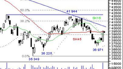 okolicach 38 656 pkt. Dodatkowym wsparciem będzie średnia piętnastosesyjna, notująca po wczorajszych notowaniach poziom 38 890 pkt.