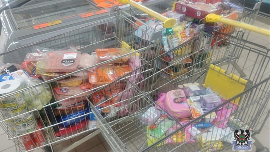 Wózki były wypełnione produktami spożywczymi, kosmetycznymi, szkolnymi i przemysłowymi.