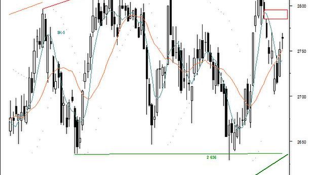 W piątek na wykresie czerwcowej serii kontraktów terminowych pokazała się świeca doji, która informuje o niezdecydowaniu inwestorów, a jest wynikiem równowagi sił rynkowych. Strona popytowa nie zdołała pokonać oporu stanowiącego początek (2 765 pkt) luki bessy z 10 marca. Dodatkowo na tym poziomie znajduje się połowa zniesienia spadków, jakie rozpoczęły się z poziomu 2 827 pkt i dotarły do 2 702 pkt. Poza tym na drogę do zwyżki kursu blokuje także luka bessy znajdująca się w przedziale 2 785 – 2795 pkt, co przy bardzo słabym trendzie (ADX mocno poniżej 20 pkt) sygnalizuje stan przeciągającego się marazmu. W bardzo krótkim okresie kontynuacja odbicia wydaje się możliwa ze względu na wskazania RSI oraz Composite Index. Indykatory te po odnotowaniu lokalnych minimów wyraźnie odbiły, co może być punktem zaczepienia, w przypadku braku innych zewnętrznych impulsów. Dopóki kurs FW20M11 nie wybije się z ponad 4-miesięcznej konsolidacji, okolice poziomów 2 630 oraz 2 827 pkt, wydają się dobrymi momentami do