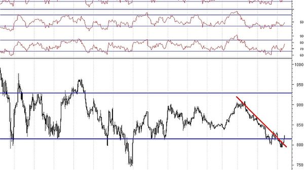 Przynajmniej od kilku tygodni flagowy indeks porusza się w stosunkowo wąskim kanale wahań. Górne ograniczenie można przyjąć na poziomie około 9300 punktów, dolne można założyć na wysokości około 8150 punktów.