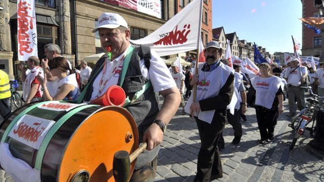 "Tak dla europejskiej solidarności, tak dla miejsc pracy i praw pracowniczych, nie dla polityki cięć".
