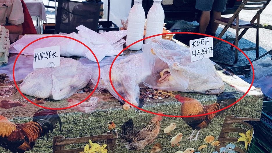 "Higiena" na warszawskich bazarach. Na zewnątrz prawie 30 stopni, a jedzenie leży w słońcu bez lodówki