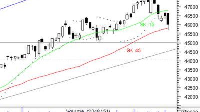 Analizując piątkowe notowania można uznać, że cały miniony tydzień należał do podaży. Po nadziejach pokonania oporu z okolic 46 800 pkt nie pozostało już prawie nic. Indeks szerokiego rynku zakończył dzień na 1 % minusie, przy obrocie 2 mld zł. Obrazem graficznym przeceny była wykreślona czarna świeca o sporym korpusie i dolnym cieniu. Swoim zasięgiem dotarła do poziomu 45 740 pkt, wartości najniższej od miesiąca. Zakres spadku był na tyle istotny, że dolny cień naruszył wsparcie wynikające z ze średniej czterdziestopięciosesyjnej. Równie negatywne tezy nasuwają się po obserwacji zachowań szybkich oscylatorów. Te sukcesywnie obniżyły wartości, podkreślając przewagę podaży. Aktualnie RSI ponownie zbliża się w okolice linii wsparcia na 40 pkt, natomiast ADX powraca w strefę równowagi. Dla inwestorów w najbliższym czasie, pierwszym sygnałem poprawy nastroju na rynku będzie powrót w okolice połowy piątkowego, czarnego korpusu, niemniej jednak podaż ma jeszcze pole manewru a najbliższe wsparcie znajduje się na