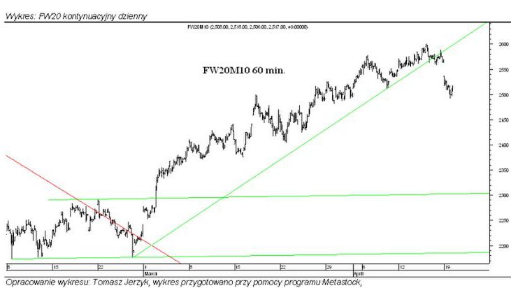 Kontrakt odnotował spadek do 2517 pkt. Po słabszym otwarciu sprzedający zdołali przełamać wsparcie na 2511 pkt., co sprawiło, iż ruch spadkowy został pogłębiony do 2492 pkt. Końcowa część sesji upłynęła pod znakiem odrabiania strat, ale mimo to sesja wyrządziła pewne szkody techniczne.