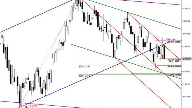 Jak na razie zatem nie doszło do żadnego przełomu jeśli chodzi o aktualną sytuację techniczną FW20M12. Zainicjowany w ubiegłym tygodniu ruch odreagowujący wytracił bowiem swój impet w rejonie zapory podażowej Fibonacciego: 2299 – 2302 pkt. zbudowanej na bazie zniesienia 38.2%. W swoich opracowaniach podkreślałem wielokrotnie, że dopiero w przypadku jej trwałego sforsowania uzyskalibyśmy wiarygodny sygnał techniczny wskazujący, iż na FW20M12 doszło do zmiany krótkoterminowego sentymentu rynkowego.