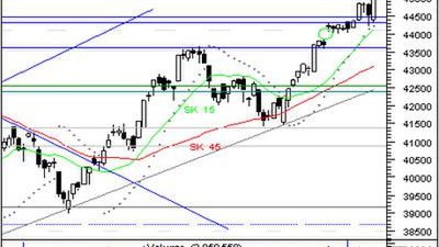 Wąska konsolidacja pod oporem, a także bierność podaży znalazły przełożenie w zachowaniu inwestorów na piątkowej sesji. Indeks szerokiego rynku odrobił ze sporą nawiązką czwartkowe straty i przy okazji ustanowił w cenach zamknięcia maksimum hossy, kończąc dzień na pułapie 45 134 pkt (wzrost o 1,4%). Białe marubozu wyznaczone w obrazie graficznym dnia ma bardzo silną wymowę i może stanowić zapowiedź silniejszego ruchu na północ w najbliższym czasie. Pozytywnym znakiem dla kupujących jest także przekroczenie i zamknięcie luki bessy z początku czerwca 2008 r. W układzie wskaźnikowym RSI zyskał na wartości, czego nie potwierdziły Derivative Oscillator i Composite Index, tym samym pozostawiając inwestorów w trudnej sytuacji, ze względu na utrzymaną dywergencję bessy. Dzisiejsza sesja może rozpocząć się od nieznacznej realizacji zysków przez cześć inwestorów krótkoterminowych a dalsza część dnia uzależniona będzie od aktywności kupujących wobec najbliższego oporu na 45 357 pkt.
