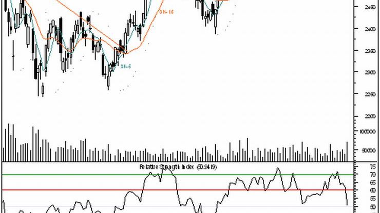 Pierwszym wsparciem, do którego strona podażowa powinna bez większego problemu skierować kursy jest około dwumiesięczna linia trendu przebiegająca aktualnie w okolicach 2 660 pkt. Kolejne wsparcie znajduje się na 2 619 pkt, gdzie kursy kontraktów terminowych konsolidowały się po przełamaniu kwietniowego maksimum. Szybkie wskaźniki techniczne zareagowały na ostatnie wydarzenia na rynku. RSI i Composite Index szybko zniżkują, RSI porusza się w dywergencji bessy powiązanej z kursem kontraktów. Spadki zasygnalizowane są tą także przez Derivative Oscillator. Wolumen obrotu znacząco wzrósł co w zasadzie określa ścieżkę spadkową na najbliższe sesje.