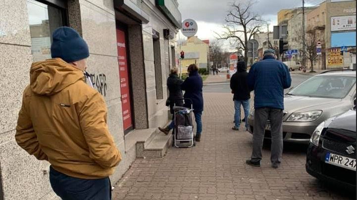 Pod sklepami i piekarniami w całym kraju ustawiają się kolejki. Niektóre obiekty wpuszczają do środka tylko dwie - trzy osoby, reszta musi czekać na zewnątrz. W wielu miejscach klienci zachowują 1,5-metrowe odstępy między sobą.