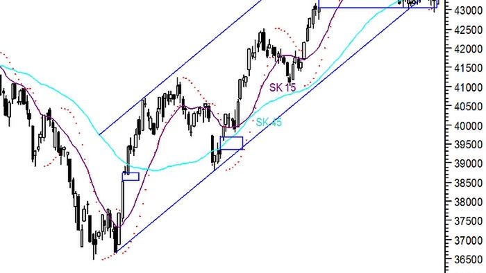 Poniedziałkowa sesja potwierdziła skuteczność poziomu wsparcia na 43 047 pkt. Wykres WIG-u wyrysował wzrostową świecę, która wykroczyła poza górne ograniczenia piątkowej sesji, co w krótkim terminie wspiera stronę popytową i stanowi o powrocie do konsolidacji o zasięgu 42 931 – 43 720 pkt. Celem dla strony popytowej jest przebicie górnego ograniczenia tego obszaru – taki ruch oznaczałby jednocześnie powrót do kanału trendu wzrostowego trwającego od czerwca bieżącego roku. Sygnałem umocnienia podaży byłaby zniżka poniżej silnych wsparć w rejonie domknięcia wrześniowej luki hossy i piątkowych minimów (42 931 – 43 047 pkt. Obydwa scenariusze mają obecnie zbliżone prawdopodobieństwo na co wskazują RSI pozostający w neutralnej strefie oraz ADX, który potwierdza ruch boczny.
