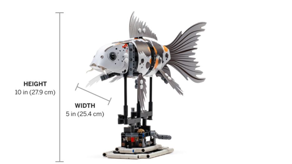 W skład podstawowego zestawu 81000 Koi wchodzą 294 elementy. Model ryby z podstawą mierzy w tym przypadku 27,9 cm wysokości i 12,7 cm długości.