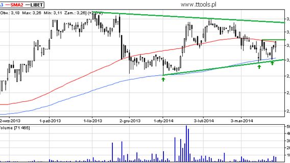 Od listopada 2013 wykres spółki Libet rysuje zawężającą się strukturę, która powoli zaczyna przypominać formację trójkąta.