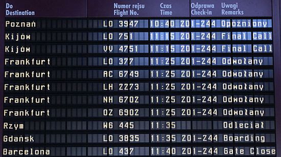 Mimo zamkniętej przestrzeni powietrznej, na polskim niebie odbywa się ograniczony ruch pasażerski. Rejsowy samolot wylądował na warszawskim Okęciu. Samoloty pasażerskie kursujące na międzynarodowych trasach zaczęło przyjmować również lotnisko w podkrakowskich Balicach, gdzie wylądowała maszyna z Duesseldorfu. Sytuacja na polskim niebie stopniowo zaczyna ulegać poprawie.