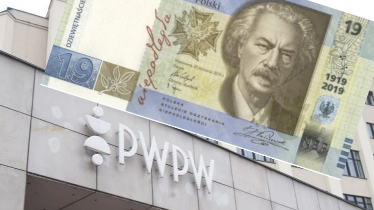 Na stulecie Polskiej Wytwórni Papierów Wartościowych banknot o nominale 19 zł