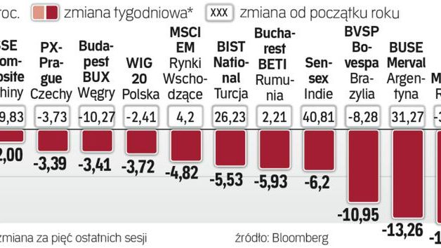 sprawiło jednak, że chińska giełda zakończyła tydzień na 2-proc. minusie, co i tak było najlepszym wynikiem spośród wszystkich rynków wschodzących.