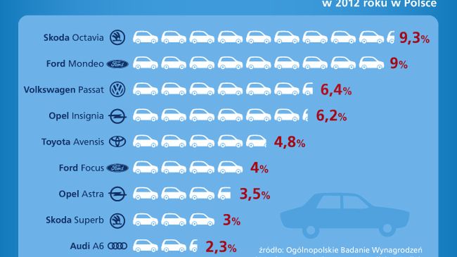 – Warto zaznaczyć, że choć w ofercie pracodawców znaleźć możemy ponad 200 różnych modeli aut, to z samochodów, które znalazły się w pierwszej dziesiątce, korzysta ponad połowa osób – dodaje przedstawiciel Sedlak & Sedlak.