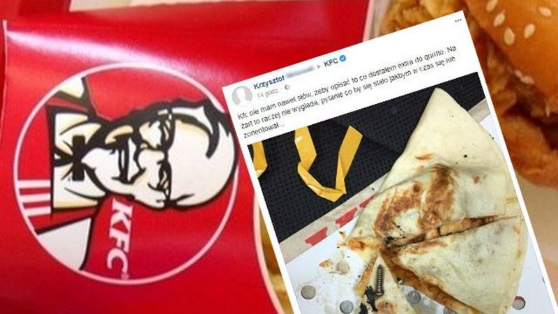 Klient wrocławskiej restauracji KFC pokazał na Facebooku sieci zdjęcie "dodatku", który otrzymał do zamówionego dania. Jak twierdzi, miał on pochodzić z grilla, na którym było przyrządzane jedzenie. Firma zarządzająca lokalem przeprasza i zapewnia, że wyjaśnia sprawę.