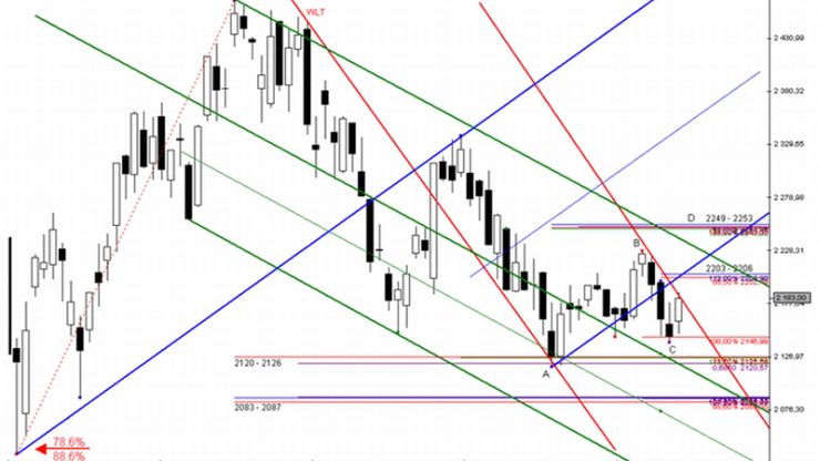 Na naszym parkiecie dominował jednak sceptycyzm, tak więc pod tym względem przebieg wtorkowej sesji nie różnił się za bardzo od tej z dnia poprzedniego. Kontrakty powróciły zatem poniżej strefy: 2163 – 2165 pkt., jednak już po chwili popyt podjął kolejną próbę ataku. Tym razem atak okazał się skuteczny, w następstwie czego bykom udało się dotrzeć do kolejnego węzła podażowego Fibonacciego: 2178 – 2181 pkt., gdzie ponownie zaczęła ujawniać się słabość naszego rynku względem wiodących parkietów Eurolandu.