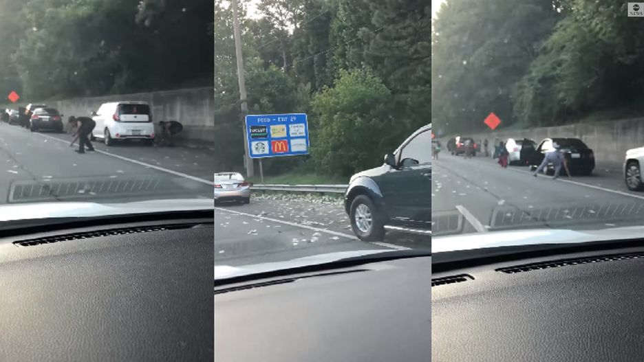 Nietypowa kraksa na autostradzie w USA. Z opancerzonego auta odpadły drzwi, ze środka wypadło 175 tys. dolarów. Niektórzy kierowcy zatrzymali się, by zebrać banknoty. Policja ostrzega - pieniądze trzeba zwrócić. Część osób już to zrobiła.