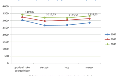 Fakt, że wynagrodzenia w styczniu 2009 roku były niższe w stosunku do grudnia 2008 roku nie jest niepokojący, gdyż jest to stała tendencja występująca w każdym roku. W grudniu pracownicy najczęściej otrzymują dodatkowe nagrody pieniężne, co podnosi poziom ich przeciętnych miesięcznych wynagrodzeń.