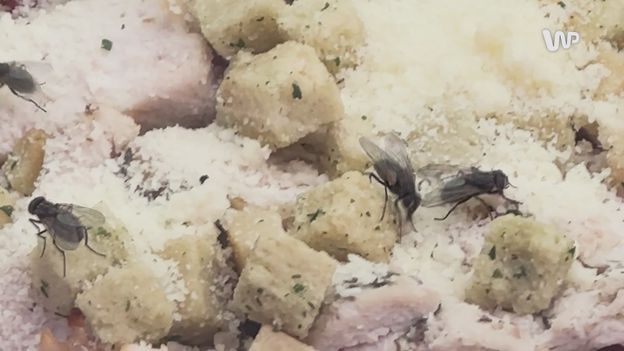 Eligiusz Komarowski zamówił jedzenie na stacji Orlen w Baranowie. Spostrzegł jednak, że bemary z żywnością na sprzedaż są pełne much. Owadów było mnóstwo zarówno przy kasie, jak i w łazienkach na stacji paliw. O komentarz poprosiliśmy koncern naftowy.