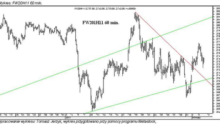 Sytuacja w nieco dłuższej perspektywie nie uległa zmianie. Kontrakt zainicjował wczoraj korektę wzrostu od poniedziałkowego minimum. Jak na razie dno zostało wyznaczone na 2723, ale mam wrażenie, iż spadek był impulsem w związku z czym spodziewam się kolejnej fali spadkowej w obrębie korekcyjnego zygzaka. Spodziewam się spadku w rejon 2707-2711, skąd winna zostać zainicjowana kolejna fala wzrostowa, która winna poprawić szczyt na 2768 i zapewne też 2777. Zamykałbym krótkie pozycje w rejonie 2712 i tam też otwierałbym pozycje długie w oczekiwaniu na kolejną falę wzrostową. W przypadku wzrostu na początku sesji otwierałbym krótkie pozycje na 2751 lub też na 2759. Zlecenie stop dla tak otwartych pozycji ustawiłbym na 2769.
