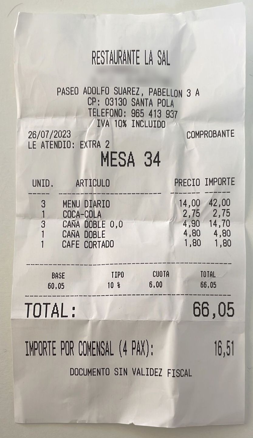 Pani Ewa podzieliła się z naszą redakcją paragonem z restauracji La Sal w nadmorskiej miejscowości Santa Pola obok Alicante. Restauracja jest położona tuż przy bulwarze, z widokiem na przystań jachtową. Okolice Alicante to jeden z najcieplejszych regionów w Hiszpanii, o dobrą pogodę nad morzem jest tu bardzo łatwo. Ile trzeba zapłacić za posiłek w takim miejscu?
