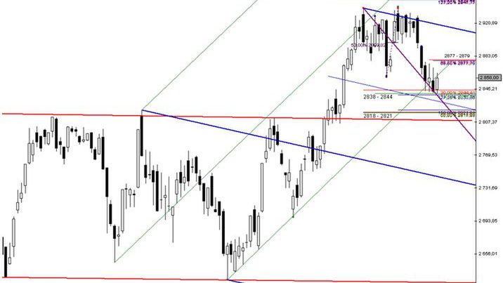 Na wstępie warto przypomnieć, że poniedziałkowa fala spadkowa wytraciła swój impet dokładnie w okolicy wsparcia Fibonacciego: 2838 – 2844 pkt.