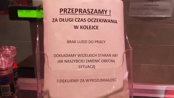 Klienci jednego z delikatesów w Gdańsku zwrócili uwagę na nietypową ulotkę. Właściciele sklepu przepraszali w niej za długi czas oczekiwania w kolejce. Tłumaczyli to tym, że nie ma chętnych do pracy. Okazuje się, że nikt nie chce pracować za ladą za 3 tysiące złotych na rękę.