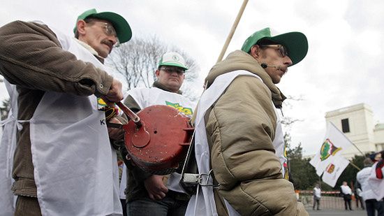 Pochód otwierała kukła uosabiająca szefa rządu i taczki z napisem "rządowi tanio wyczarteruję". Demonstranci przynieśli też rzeźbę z drewna przypominającą premiera. Wcześniej przed budynkiem parlamentu demonstrujący spalili "trumnę dla ludzi pracy".
