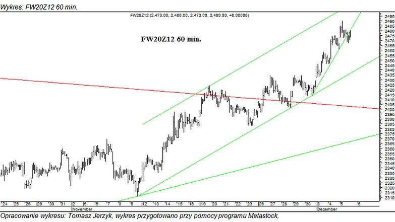 Wczorajsza sesja zakończyła się wzrostem kontraktu do 2480. Po wyższym otwarciu kontrakt odnotował wzrost do 2490, a w kolejnych godzinach miała miejsce korekta zwyżki. Dzienne minimum zostało wyznaczone na 2467 w drugiej części sesji, ale końcówka ponownie należała do kupujących.