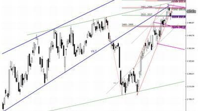Analizując rynek od strony technicznej przewagę ma zatem w dalszym ciągu obóz popytowy, gdyż niedźwiedzie nie są na razie w stanie przedrzeć się poniżej kluczowego obecnie wsparcia: 2480 – 2485 pkt. Jak pamiętamy bowiem (wspominałem o tym w swoich zeszłotygodniowych opracowaniach) koncentrują się tutaj ważne zniesienia i projekcje cenowe Fibonacciego. Dodatkowo (jak widać na załączonym wykresie) przebiegają także: median line i wewnętrzna linia trendu, wzmacniający tym samym znaczenie wsparcia. Uważam zatem, że zanegowanie tak skonstruowanej zapory popytowej pogorszyłoby krótkoterminowy wizerunek wykresu, stając się jednocześnie zapowiedzią kontynuacji ruchu spadkowego.