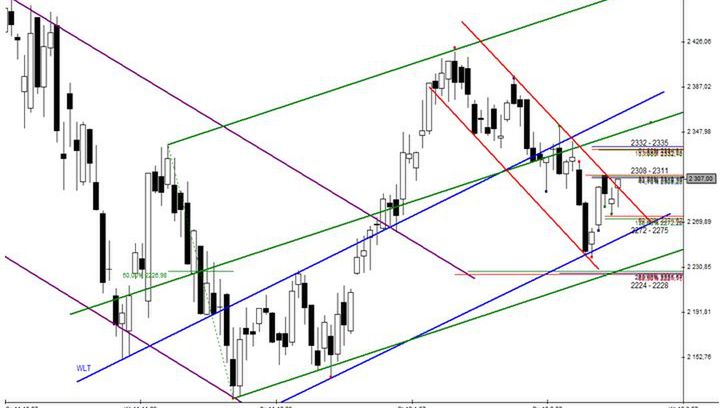 Skoro sesja rozpoczęła się od tak miłego dla posiadaczy długich pozycji akcentu popytowego można było przypuszczać, że kontrakty dotrą w niedługim czasie do kluczowej zapory podażowej: 2308 – 2311 pkt. (w swoich opracowaniach sugerowałem, że jej zanegowanie świadczyłoby o ponad przeciętnym wzroście zainteresowania otwieraniem długich pozycji i prawdopodobnie doprowadziłoby do konfrontacji w kolejnym przedziale oporu Fibonacciego: 2332 – 2335 pkt). W miarę upływu czasu warszawski parkiet zaczął jednak realizować dawno ustaloną już strategię gry polegającą na ignorowaniu prowzrostowej atmosfery panującej na wiodących rynkach Eurolandu. W efekcie kontrakty weszły w fazę ruchu bocznego, przestając tym samym reagować na coraz to wyższe kwotowania wiodących indeksów europejskich.
