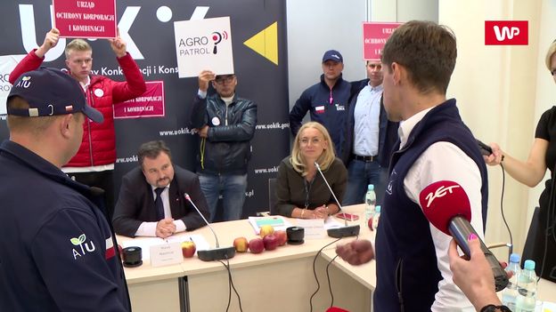 Agrounia przerwała konferencję prasową, zorganizowaną przez UOKiK. Jej lider – Michał Kołodziejczak – zarzucił prezesowi urzędu bierność w walce z dużymi marketami, które działają – jak przekonywał – na niekorzyść rolników. – Trochę to jest komedia. Proponuję panu Kołodziejczakowi wycieczkę do Brukseli – mówił w rozmowie z reporterem WP szef UOKiK, Marek Niechciał. Więcej w materiale wideo.